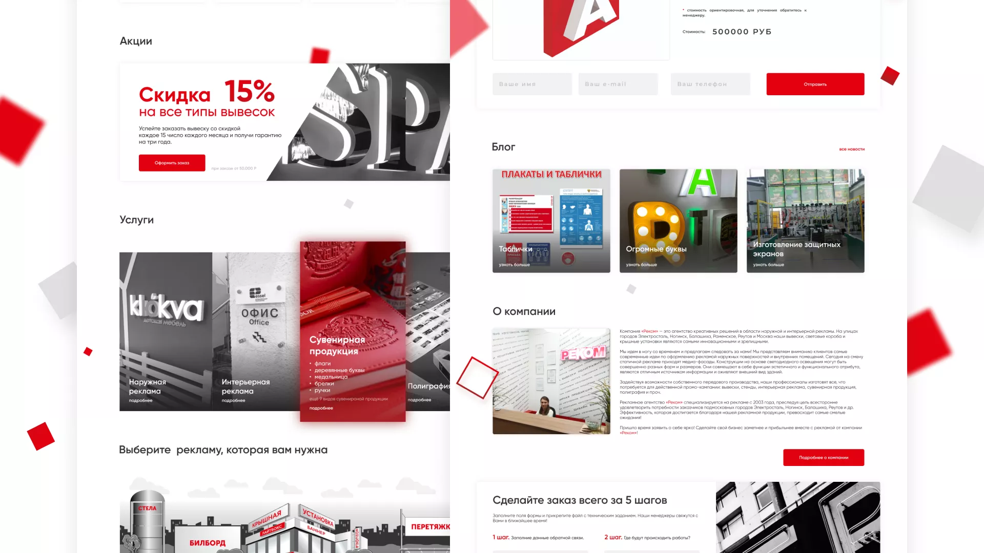 Стаж рекламно-производственной компании «РЕКОМ» — более 15 лет. Компания оказывает полный спектр услуг в Балабаново по интерьерной и наружной рекламе, а также по широкоформатной печати и полиграфии.